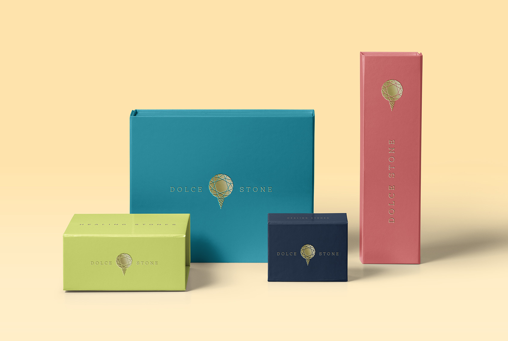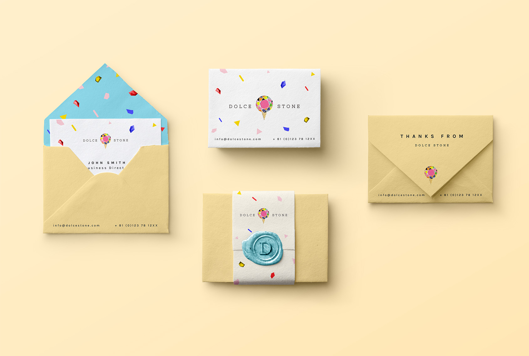 アクセサリーブランドDolce Stoneのロゴをデザインしました。ブランド名の「Dolce」(イタリア語で「甘い」)にちなんで、ジェラートをイメージした宝石をモチーフにしました。このデザインは、デザインコンペで100人近い応募者の中から選ばれました。