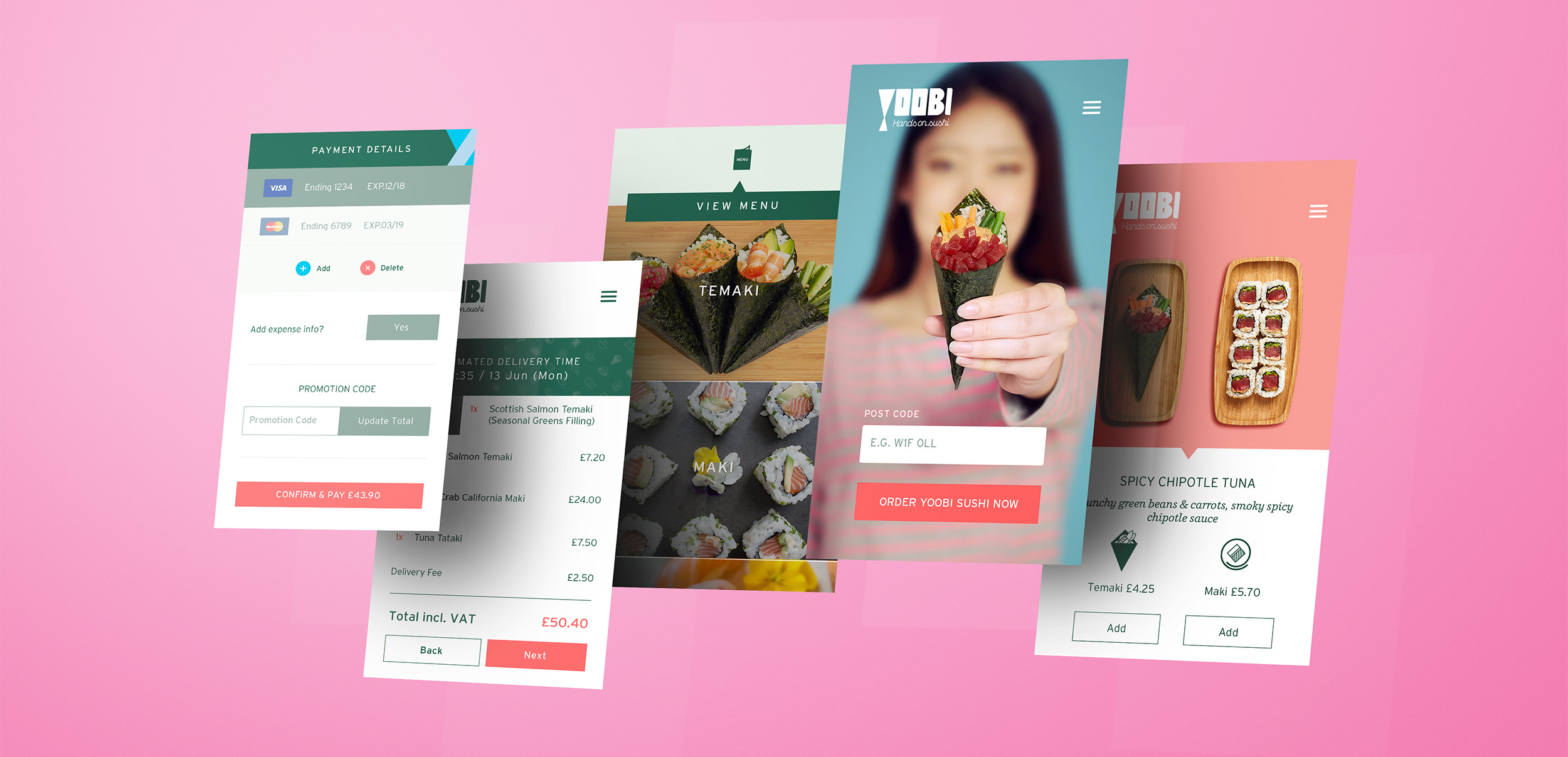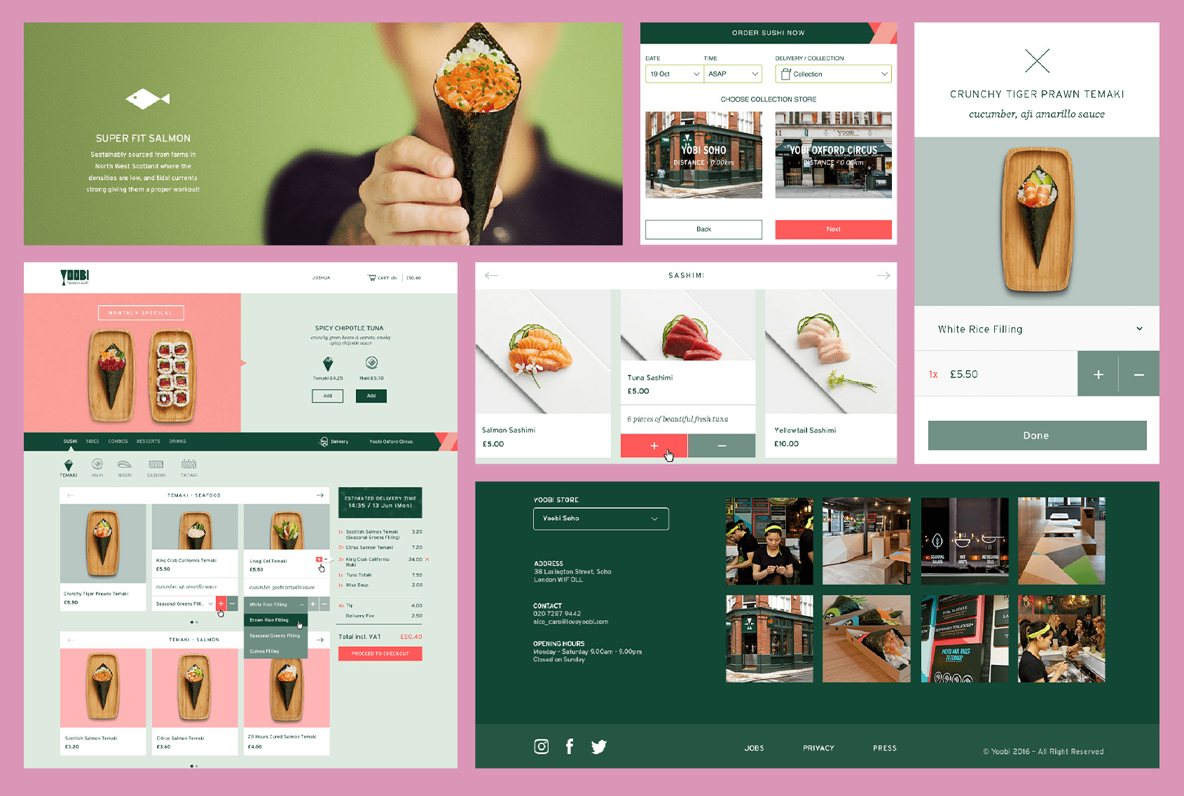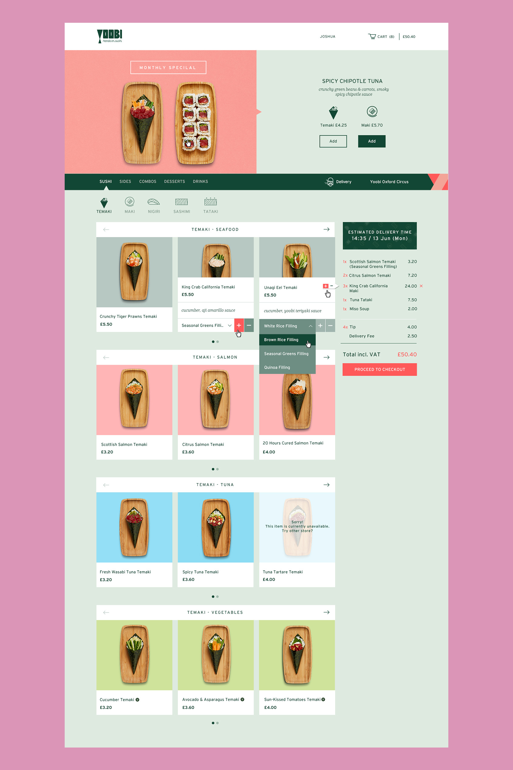 デリバリーとテイクアウトのオーダー機能を搭載した手巻き寿司をメインとした飲食店ののデザインを担当。